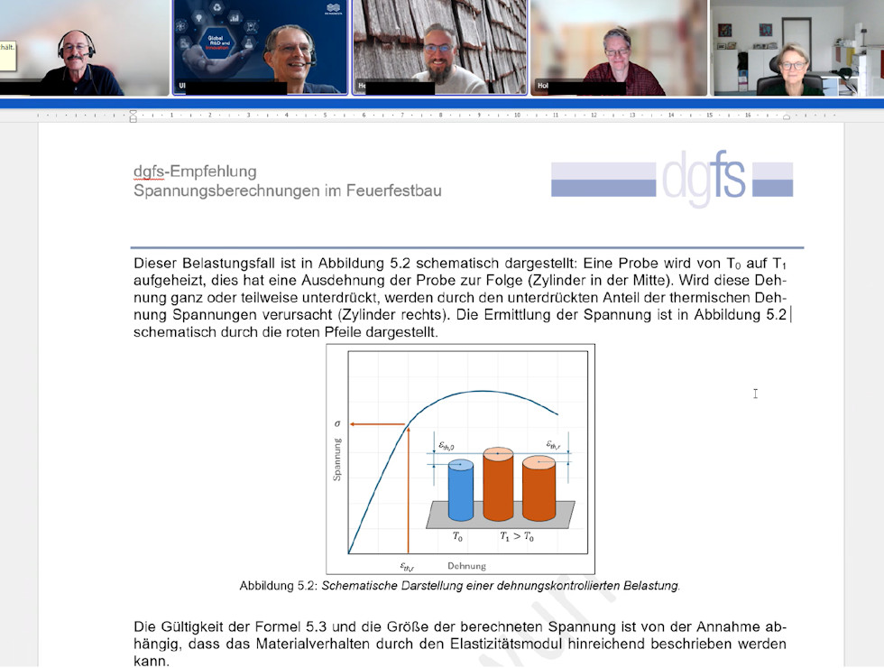 Die dgfs-Arbeitsgruppe „FEM“ hat bei ihrer vergangenen Sitzung den finalen Feinschliff an der neuen dgfs-Empfehlung „Spannungsberechnungen im Feuerfestbau“ vorgenommen.