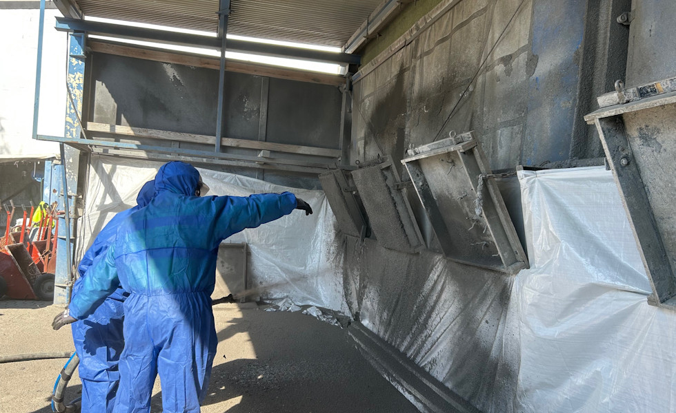 In den folgenden Tagen drehte sich alles um das Thema Spritzen – ein zentrales Verfahren im Feuerfestbau, das vor allem eines verlangt: üben, üben, üben.